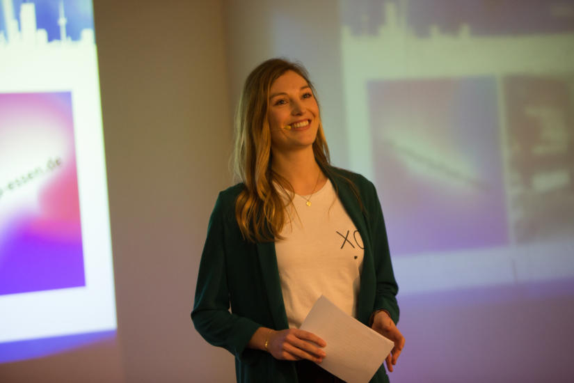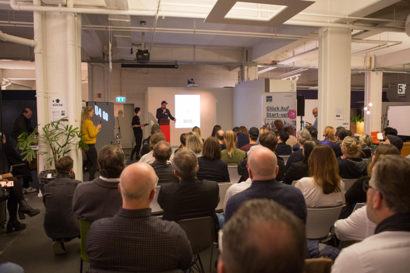 In der inspirierenden Kulisse der Erlebniswerkstatt Neues Arbeiten in der Max-Keith-Straße überzeugten sich rund 120 Besucherinnen und Besucher vom kreativen Potenzial Essens. Zehn Unternehmen aus der Essener Kreativszene hatten jeweils 8 Minuten Zeit, sich und ihre Ideen auf der Bühne zu präsentieren. Was für die Unternehmen eine Herausforderung darstellte, garantierte beste Unterhaltung für das Publikum.