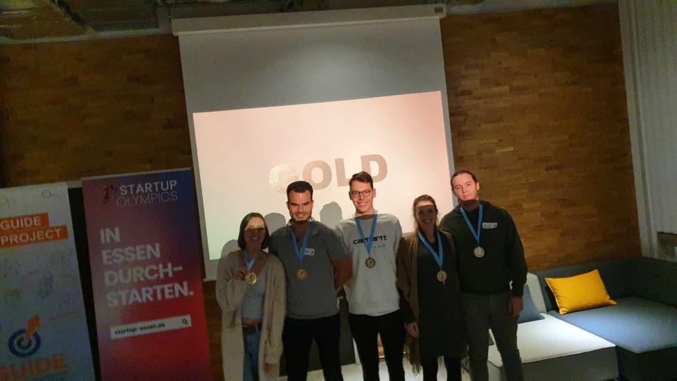 Über die Goldmedaille durfte sich das Team "Mindconnect" freuen, das mit einem digitalen Adventskalender für Mitarbeitende in Unternehmen die Jury überzeugte. Der Clou: Hinter jedem Türchen verbirgt sich eine interaktive Aktion zur Stärkung des Teambuildings. Der zweite Platz und somit die Silbermedaille ging an das Team "Get Your Present", dessen Geschenkeempfehlungs-App die Suche nach dem richtigen Geschenk erleichtert. Bronze gewann das Team "VR Dreieck", das eine VR-Lösung entwickelt hat, mit der Planungssicherheiten in der Immobilienentwicklung erhöht werden sollen. Diese Teams werden, wenn sie sich für eine Gründung entscheiden, von den GUIDE-Gründungscoaches und vom Start-up-Team der EWG auf dem Weg zum eigenen Start-up begleitet.