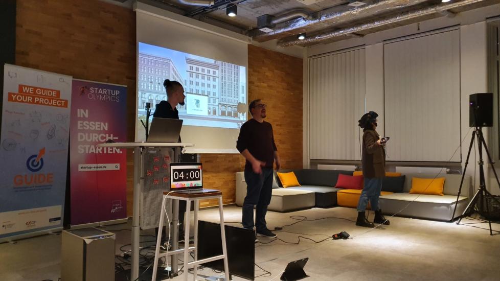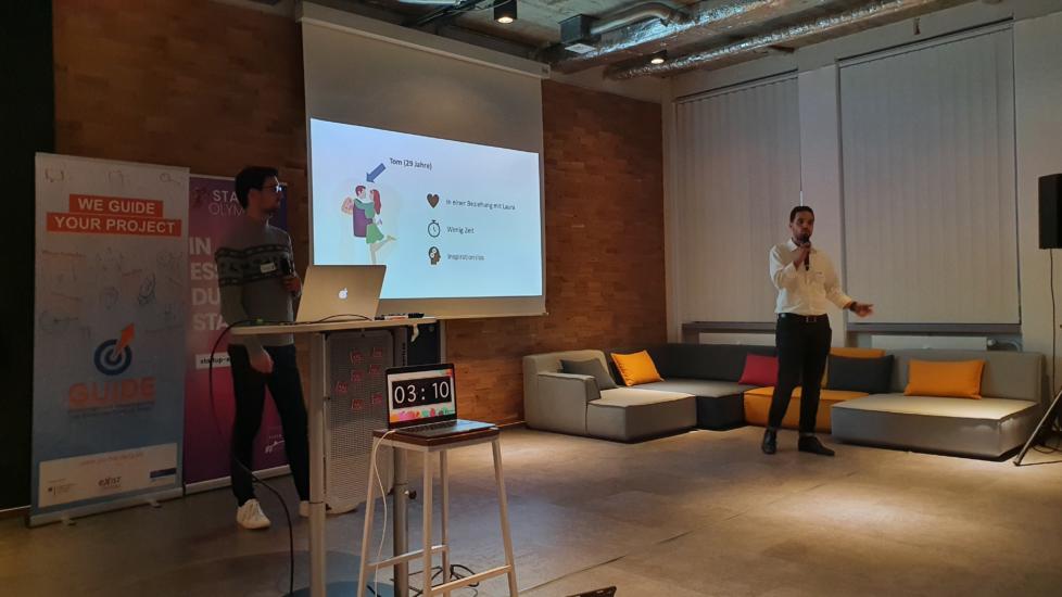 Nach zwei arbeitsreichen Tagen präsentierten die Teams dann am Sonntagabend ihre Start-up-Konzepte der hochkaratig besetzen Jury – bestehend aus Elena Huth, Gründerin von Cultorino, David Ewald, Co-Founder des Essener Company Creators CREALIZE, Dr. Ellen Rettig, Leiterin der TÜV NORD Digital Academy, Sascha Peljhan, Inhaber des Workspace A81, und Prof. Dr. Pedro José Marrón vom Zentrum für Gründung und Innopreneurship der Universität Duisburg-Essen (GUIDE).