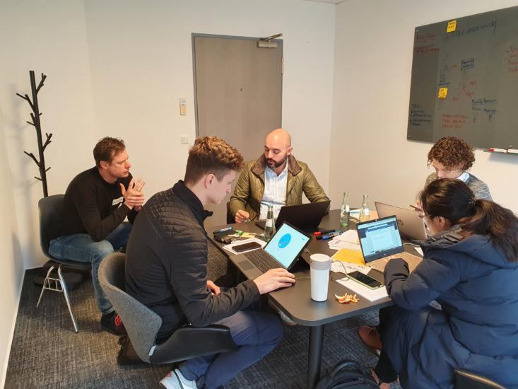 Neben intensiven Arbeitsphasen sorgten dabei immer wieder kurze Theoriesessions für wertvollen Input, der ganz nach individuellem Bedarf der Teams von knapp 20 Mentor*innen weiter vertieft wurde. Profis wie Matthias Bohm, Gründer und Geschäftsführer von Grubenhelden, Jan Gräfe, Geschäftsführer vom Gründerfonds Ruhr, oder Nora Breuker, Expertin für Community-Building und Social-Media-Marketing, brachten eine große Bandbreite an Erfahrungen mit und beantworteten u. a. Fragen zu Business Modeling, Marketing, Finanzierung und Vertrieb. Darüber hinaus gab es Hilfestellungen zur Erarbeitung des Geschäftsmodells anhand des "Business Model Canvas" und wertvollen Input für die Präsentation am Sonntagabend. Key-Note-Speaker Dr. Aaron Brückner, erfolgreicher Unternehmer und Berater für Social Media, zeigte den Teams, worauf sie sich bei ihrer Idee fokussieren sollen.